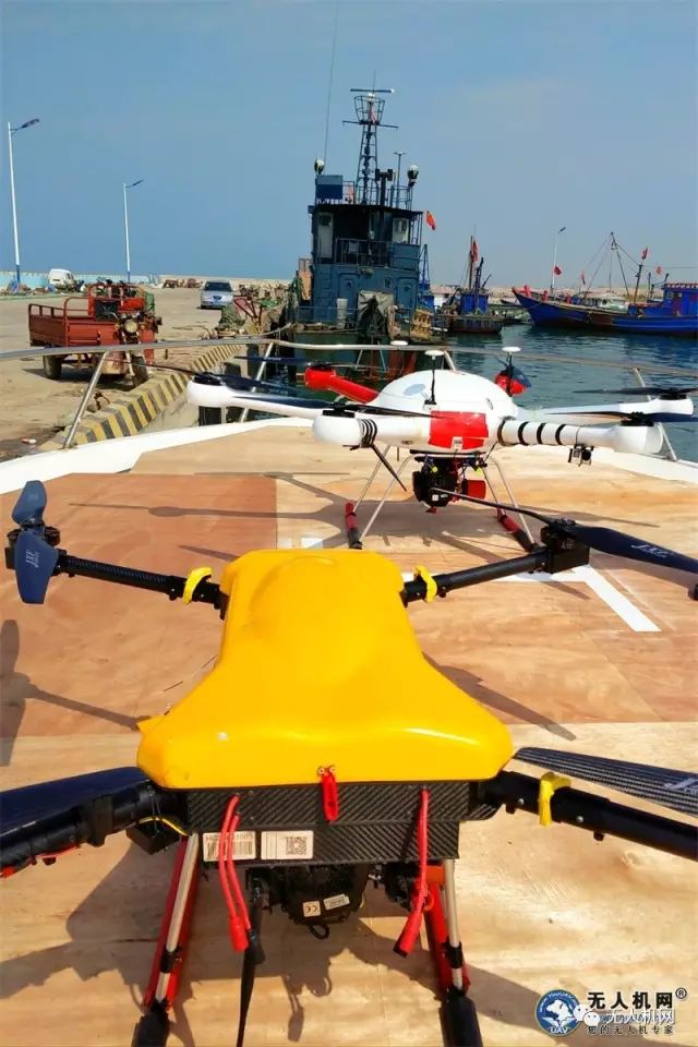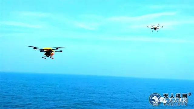 两架无人机搭载瑞深动力系统准备跨海/无人机网摄