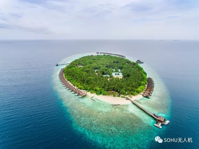 作品《马代Dusit Thani全景》,拍摄于马尔代夫都喜天厥岛。