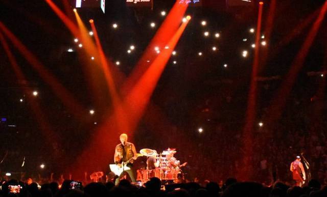 金属乐队Metallica的欧洲世界无线巡演上周四在哥本哈根的皇家竞技场开幕,15000个座位爆满,最令人惊艳的是,现场有一大群微型机器人在乐队头上飞舞。在乐队完成火爆单曲“Moth Into Flame”之后,数十架微型无人机从舞台上起飞,在舞台上空形成了一个旋转的圆圈。随着音乐响起,越来越多的无人机加入了这个队伍,在空中的造型越来越复杂,最后形成了三个相互交错的圆形。