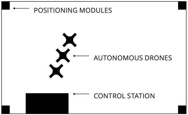 在这样一个环境中,飞行的无人机如此接近观众,是一个巨大的挑战。跟室外不一样,室内无人机无法依赖GPS信号,这些信号在室内环境中会严重退化,不能满足自主无人机的导航需求。在高压、现场活动环境中,数十架无人机在接近人群时飞行的安全问题,给他们带来了进一步的挑战。由于在巡回演出中改变演出条件而带来的不确定性,以及无人机系统组件和传感器,包括数百个驱动无人机的马达的变化,是这种无人机演出系统的另一个必要条件。