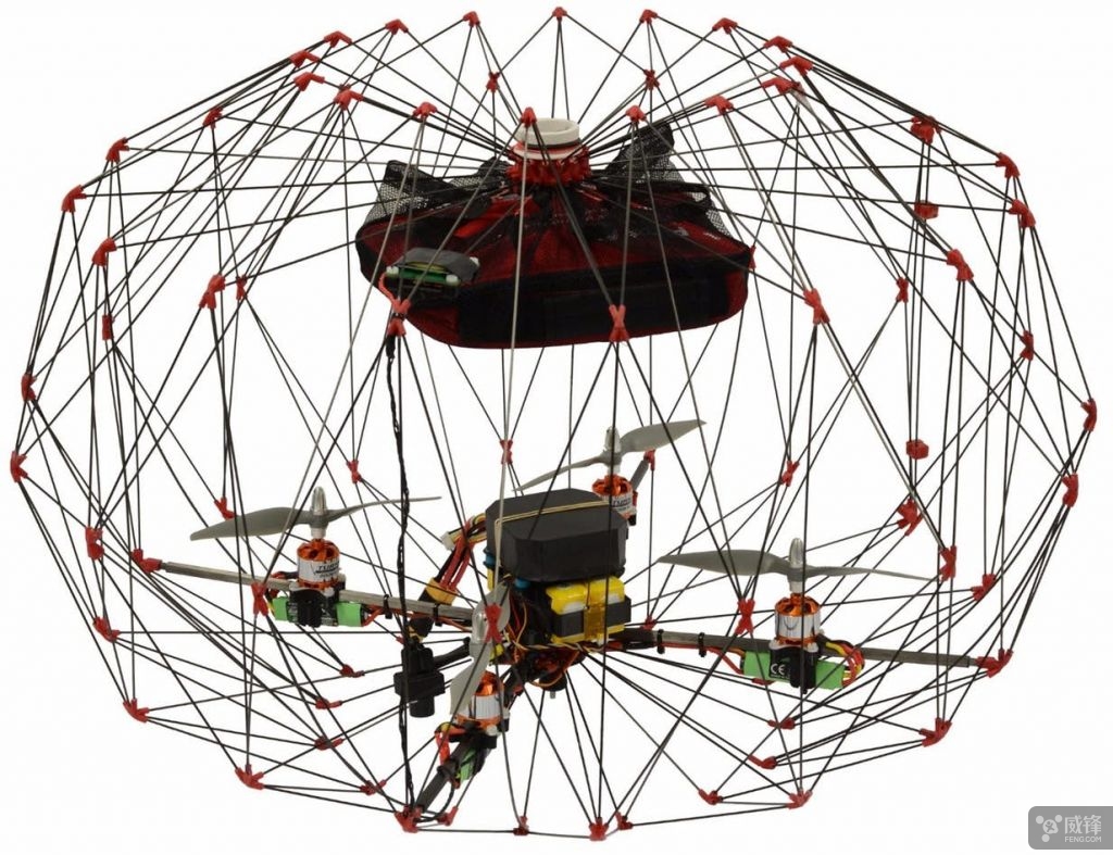 我们已经看到过像 Gimball 这样的无人机,它把自己的主要核心部位封闭在球形框架之中,用以增加安全性和耐用性。但是这种笼子结构的无人机体型会很庞大,包装携带方面都会很麻烦。于是就有无人机研究者想到了一种折叠式的设计。最近瑞士洛桑联邦理工学院( EPFL )智能系统实验室的研究人员开发了一种新型的无人机,它使用了折纸式的碳纤维笼,在笼子展开时可以很好地给无人机护航,而在不用的时候人们可以把笼子折叠起来,以方便携带。