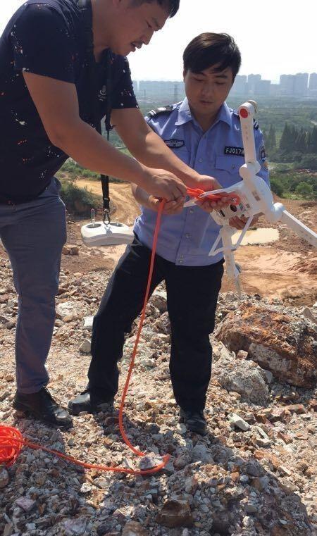 无人机中队火速赶到现场,测定风向,系好绳索,无人机缓缓爬升,在无人机驾驶员准确操纵下,最终无人机精确将救命绳索送至受困者面前。受困者立即将绳索解下,紧紧系在绝壁小树上,借助救命索帮助,慢慢顺道而来,终于安全着陆。