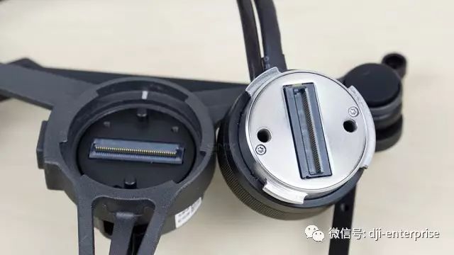 云台的安装离不开位于前方避障模块下方的标准数据接口,这个接口跟悟2的接口完全相同,用户可以通过这个接口你可以实现下单云台、下双云台和上单云台三种不同的挂载模式。