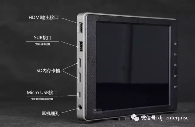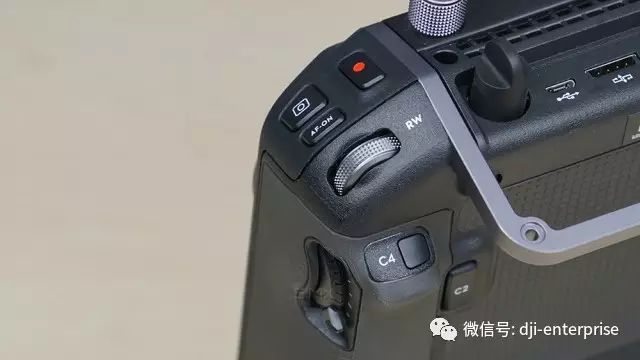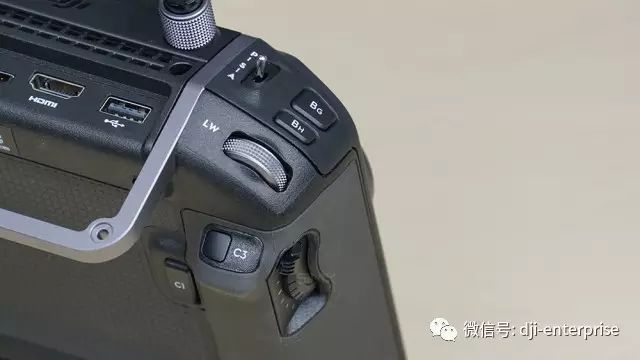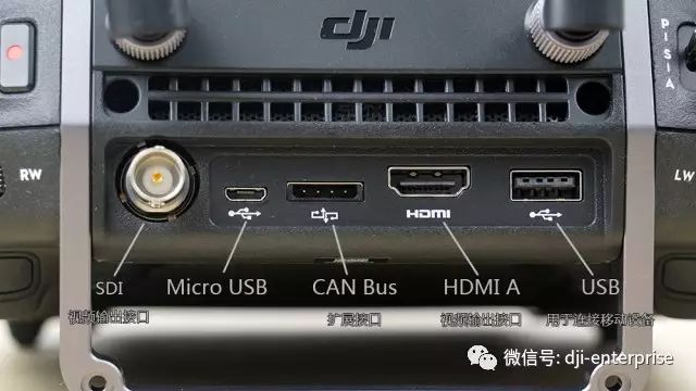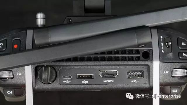 而遥控器背面标配的HDMI、SDI以及USB、CAN等接口,让Cendence遥控器的扩展能力大大提高。其中,SDI接口甚至能够无缝衔接广播影视应用及高清直播,将航拍画面接入监视器等设备,实现实时转播等功能。