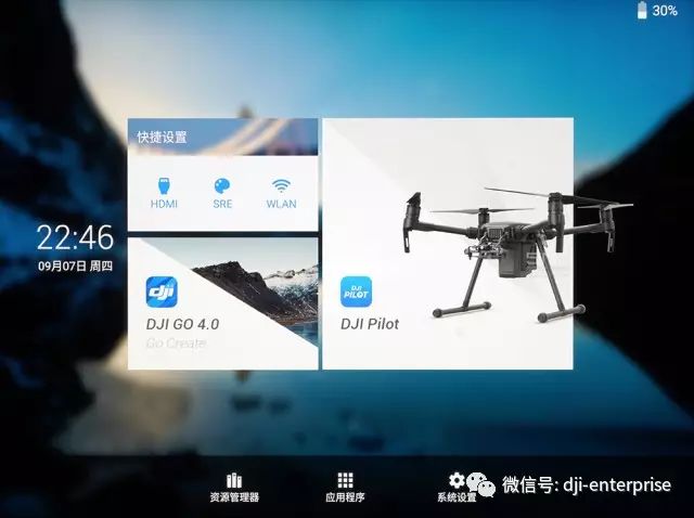 除了这款APP之外,大疆还为行业级无人机平台也开发了一款全新的APP —— DJI Pilot。这款APP目前尚未提供iOS版,使用安卓平台的小伙伴可以先搜一下。在使用Cendence遥控系统的情况下,遥控器默认状态下首先开启的APP是 DJI GO 4.0。如果要切换到更专业的 DJI Pilot,点击:系统设置→桌面设置,将 DJI GO 4.0 切换成 DJI Pilot 即可。