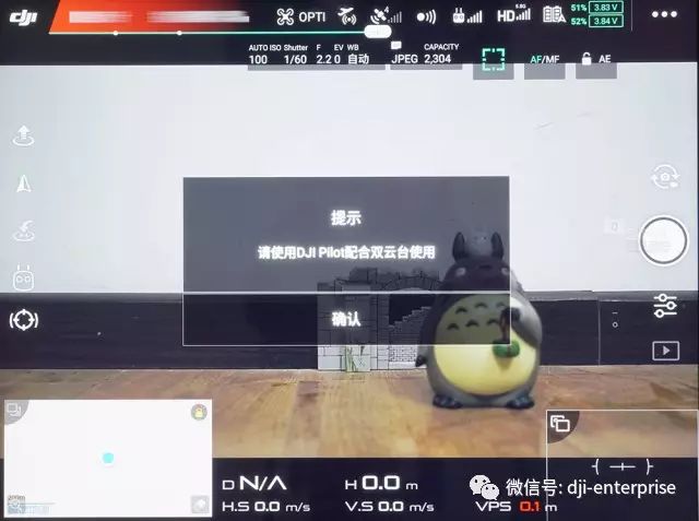 不过在使用双云台时,DJI GO 4.0 会提示并强制切换到DJI Pilot。