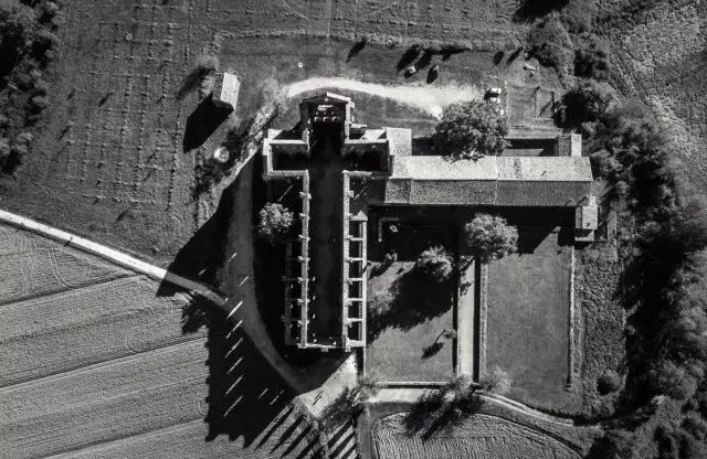 黑白照拍摄方式也适用于航拍建筑物,通过抹除主要对象的色彩,更能凸显建筑的年代感,增加其神秘的气氛。
