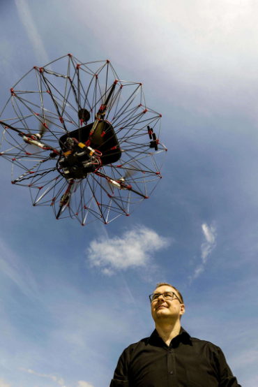 瑞士联邦理工学院智能实验室和NCCR机器人技术有限公司合作,开发科折叠的笼式机器,结构轻量且紧凑。人可以徒手抓取和身体接触不用担心安全问题。当笼子被打开时,螺旋桨将立即停止。这种笼式机器人带有自主性,其绝对的安全性填补了大多数无人机无法完成的使命。活动范围限于约2公里。