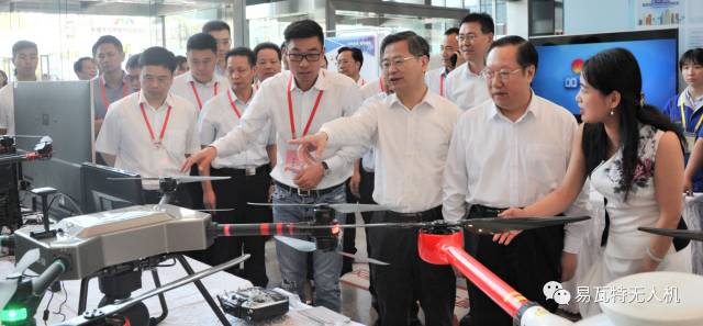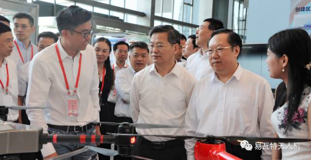成果展示区里,智能相关产业的展台占据了主要位置。湖北省省长王晓东、武汉市委书记陈一新一行在易瓦特展台前驻足参观。在听取易瓦特董事长赵国成先生的介绍后,对易瓦特无人机系统、无人机行业解决方案和VR智能装备及技术大加赞扬并表示,人工智能和无人机作为当下科技的趋势,需要注重其创新研发和技术落地,期待像易瓦特这样的优秀领军企业能够加速创新,引领行业快速发展。