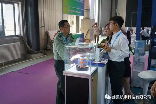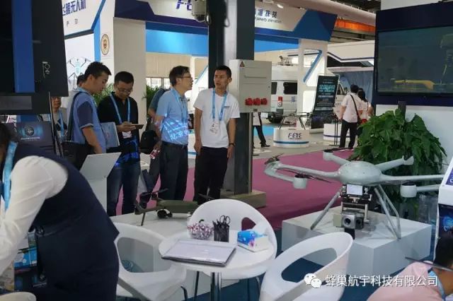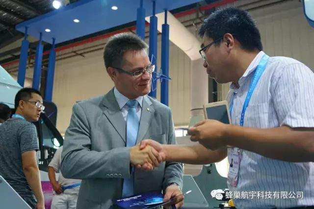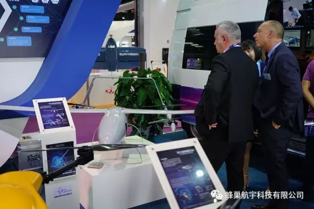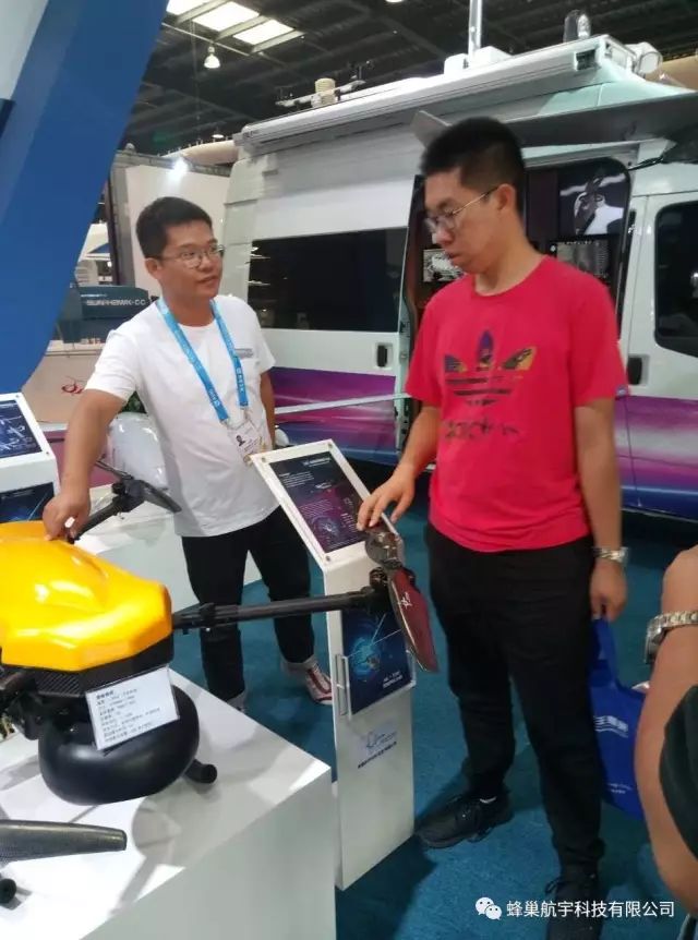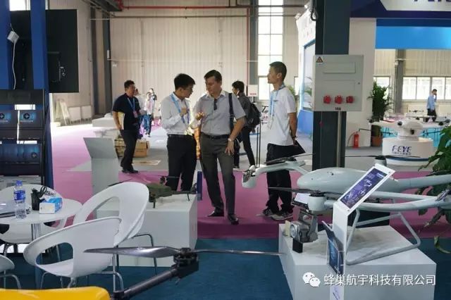 蜂巢航宇本次展品为多旋翼、固定翼、复合式、便携式无人机以及小卫星等航空航天产品和激光清障器、倾斜3D摄影机等任务载荷各类产品共14件,受到各方关注。有产业园区领导不远千里前来参观: