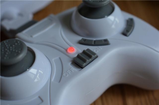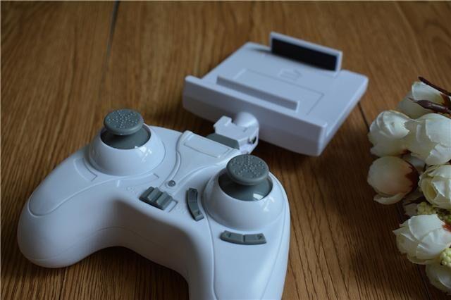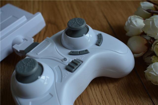 2.4GHz的专用遥感遥控,一个控制上下,一个控制方向,右摇杆下面还有两个微调的按键。