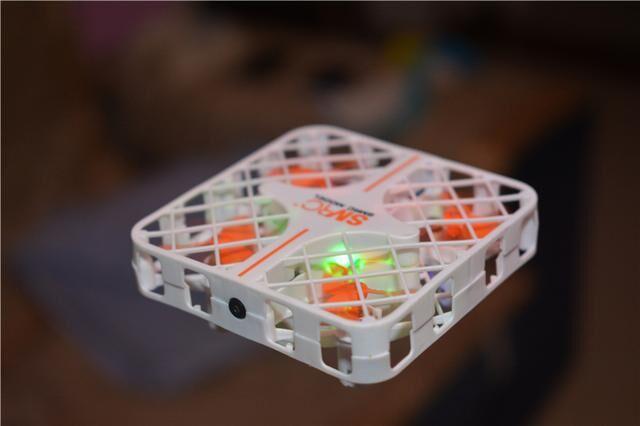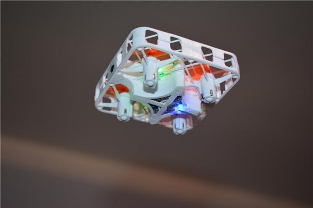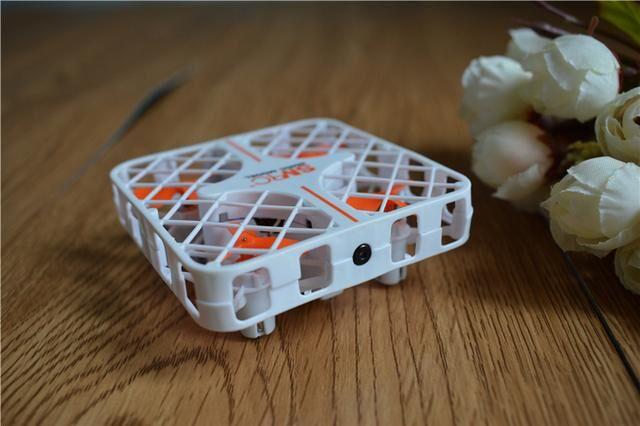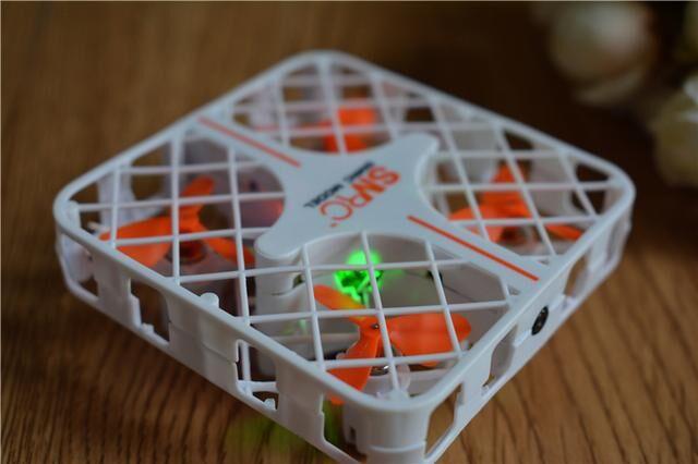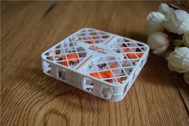 然后介绍我们的正主SMRC迷你无人机,和普通无人机相比,可以看在螺旋桨外有一层保护网,从根本上杜绝了螺旋桨叶伤人的问题,就是碰撞到小朋友,也不会有什么问题,尤其是这款产品的质量还非常轻,所以十分的安全。