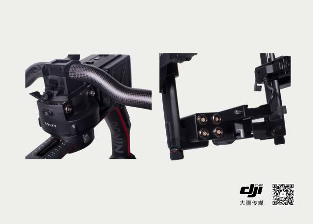 为了满足更专业的使用需求,如影2提供6个14.4v 6-pin、2个12.6v p-tap电源接口;更丰富的供电接口和机身内部走线让如影2可以为摄影机、监视器、无线图传、跟焦器等配件一体供电,简化了拍摄附件的供电方式,解决了由于繁杂走线带来的一系列问题,提升了现场的拍摄效率。