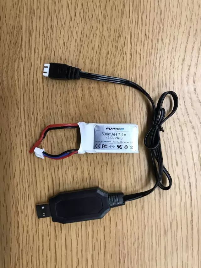 电池采用了非智能的2s 540mah锂聚合物,使用USB充电器充电。非智能电池的好处就是价格很便宜,不过保养还是要费点心,不能过充过放,也不宜满电存放。