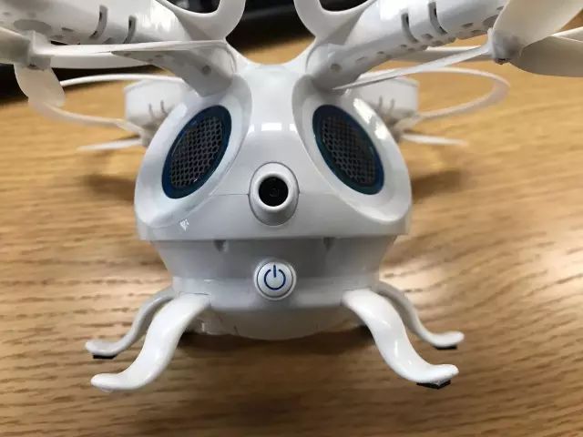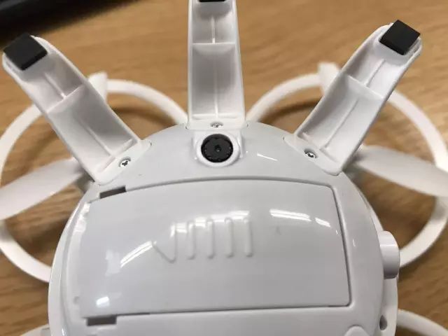 乌贼无人机机体前方是主摄像头,可以手动调节位置,不过可调角度不多。