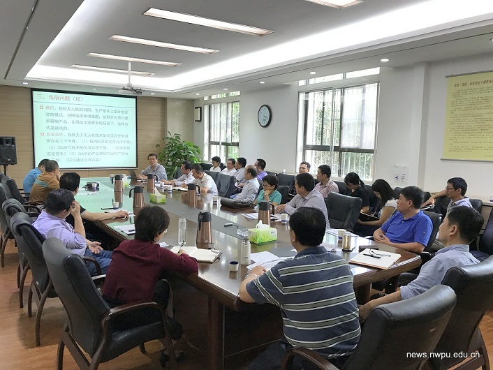 9月21日下午,西工大在行政楼A座223会议室召开无人机发展论坛研讨会议。参加会议的有校党委常委、副书记张骏,党委常委、副校长宋保维,校长助理张艳宁,航天学院闫杰,航空学院宋笔锋,航空学院高正红,航空学院白俊强,航海学院潘光,航空学院张炜,365所贾伟,机电学院冯华山,研工部顾振芳,管理学院郭鹏,国资处处长张义庭,科管部高新处副处长郭宁生,发展规划处副处长韩争胜,资产公司副总经理杨安庆、总经理助理杨本昭及资产公司相关人员。会议由资产公司总经理王家彬主持。