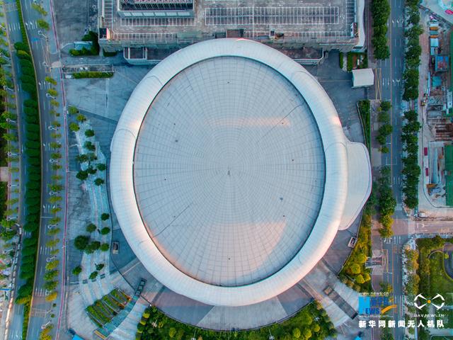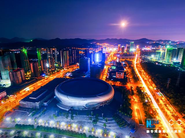 体演中心在车流与万家灯火交相辉映中,流光溢彩。
