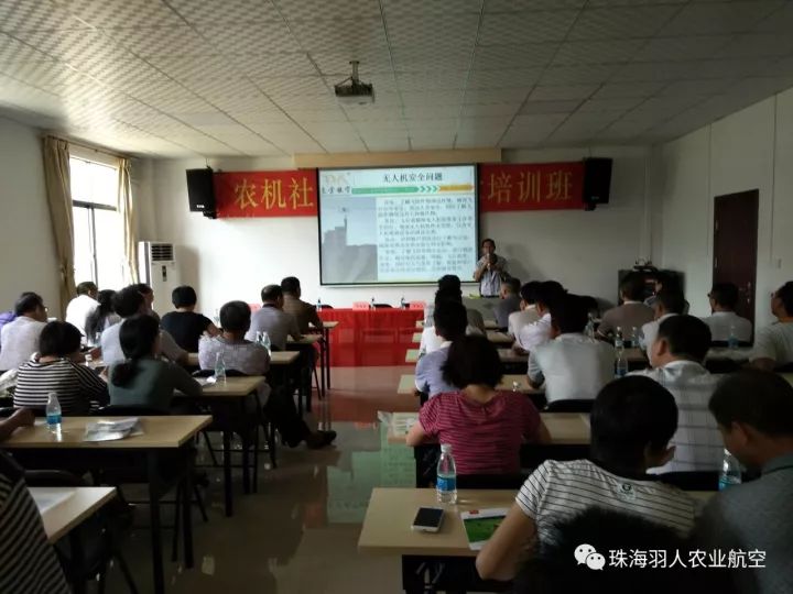 珠海羽人农业航空有限公司有幸应邀参加了本次举行的农机社会化服务技术培训班,并在培训班上做了农用无人机培训演讲,与培训班学员分享交流了农用无人机植保技术等知识。培训演讲结束后,众学员参加农用无人机实操演示。