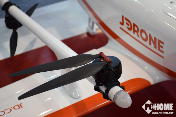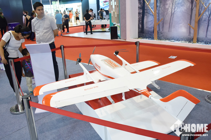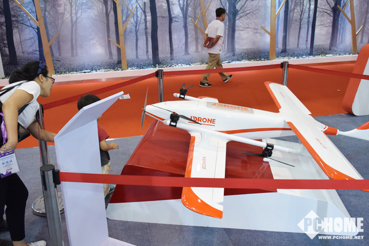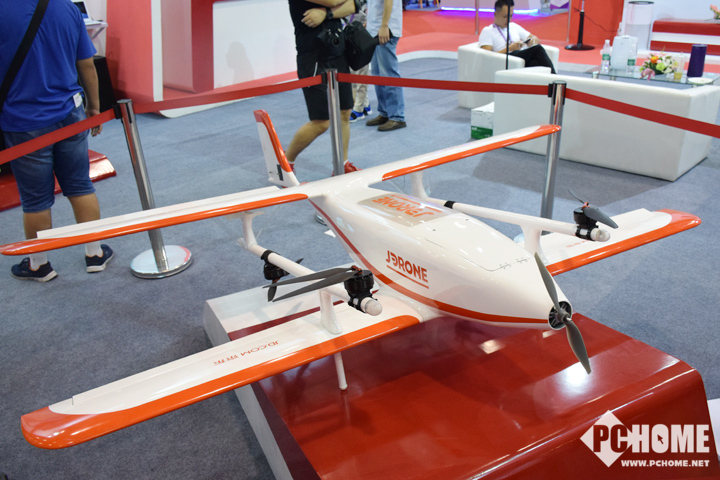 久闻京东商城的无人机快递威名,没想到在2017SINOCES展上不期而遇。这款V2固定翼无人机具有多旋翼垂直起降的灵活性,对场地要求低,同时具备固定翼飞机的长航时大载重的性能和高效气动外形。