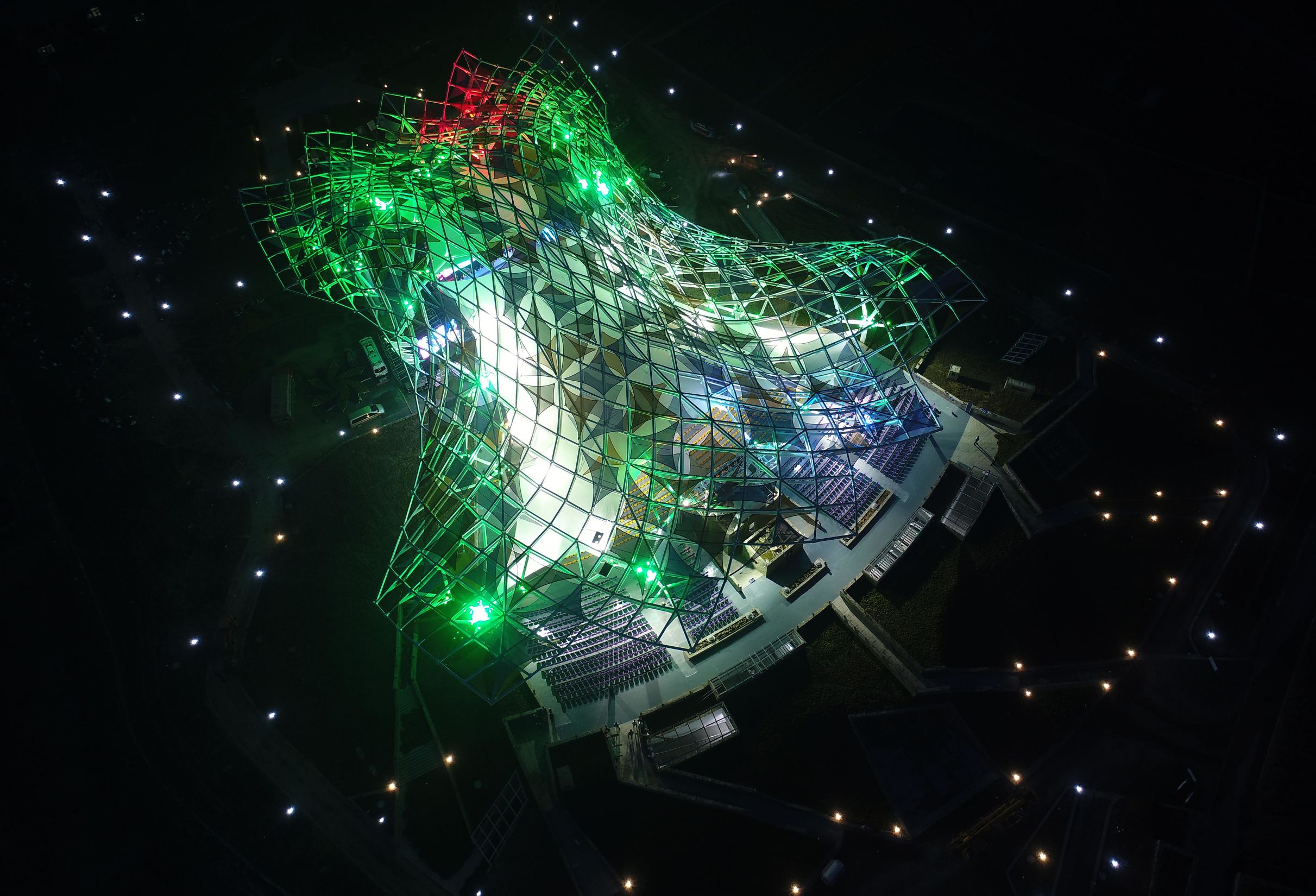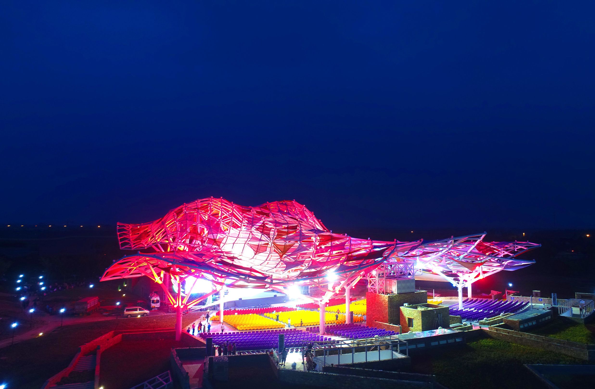 宿迁三台山国家森林公园衲田花海秀场,为明晚在这里举行的第三届亚洲青年微电影展颁奖盛典试彩灯。
