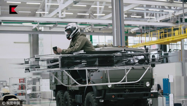 当地时间2017年9月26日,卡拉什尼科夫公司在俄罗斯莫斯科展示其研发的载人“无人机”。