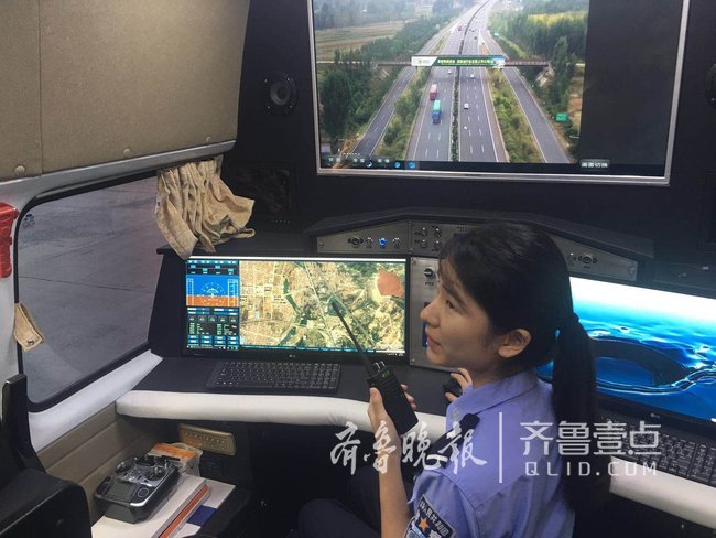 警车内操作无人机的山东省高速交警总队二支队民警徐枫介绍,此刻正在对高速公路进行巡查抓拍的无人机系统有个专业的名称叫作无人机合成作战系统,它有地面指挥车、一部四旋翼无人机、一部六旋翼无人机和一部固定翼无人机组成,主要应用在济青高速公路南线的交通违法查缉和事故处理,具有非常强大的功能。