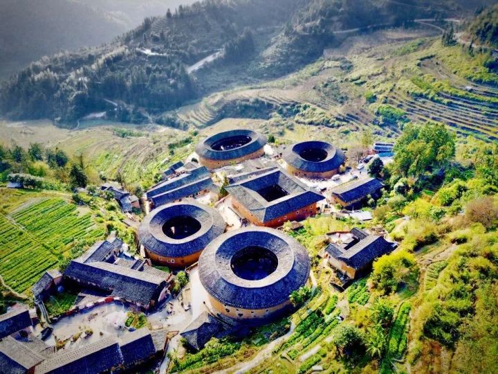 在福建上万座土楼之中,永定的洪坑土楼群和南靖的田螺坑土楼群,由于分布集中,方楼和圆楼并存,更得旅行者青睐。你既可以在高空鸟瞰河谷全景,也可以低空飞行,拍摄单独一座圆楼内部,留下富有生趣的生活瞬间。