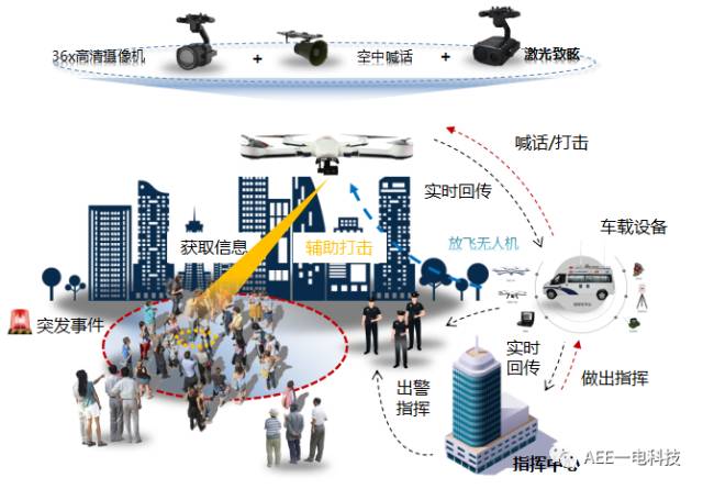 他还例举了AEE警用无人机系统在群体性突发事件应急处置、暴恐事件应急处置、犯罪嫌疑人追捕、交通管理、灾害救援、违建查控、口岸冲突处置、海上救援、禁种铲毒等各个领域的具体解决方案和应用案例。