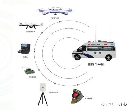 以AEE多任务型警用无人机系统F600、侦察型警用无人机系统警鹰 F100、移动指挥车系统UC10为例,讲述了传统型、扩展型、智能型三类警用无人机系统的系统特点及关键技术。