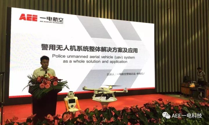 作为冠名嘉宾,AEE一电航空营销中心总监李维拉先生就“警用无人机整体解决方案及应用”进行了专业演讲。他充分讲述了AEE警用无人机具有快速响应、机动灵活、高空大范围视频采集、可视化应急指挥、人员零伤亡、推进警用装备体系新发展等应用优势。