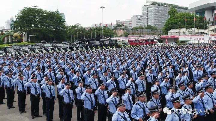 市公安局局直机关领导、交警(含铁骑队)、特警、边防、消防、边检站、镇街(园区)公安分局等组成40个方阵2000余民警、无人机编队、铁骑队、特种车辆车队、警航飞行队严阵待发,场面威武壮观。