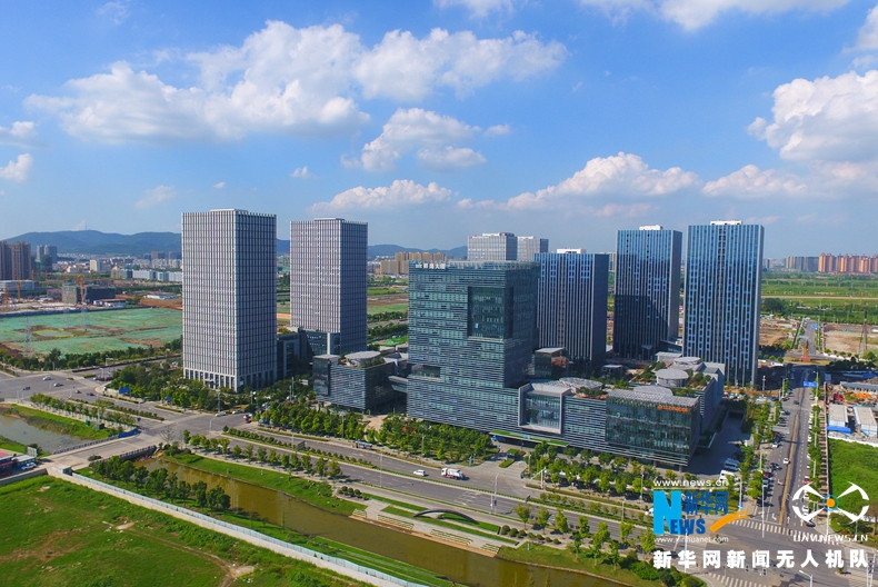 图为航拍江北新区孵鹰大厦(席航飞 摄)