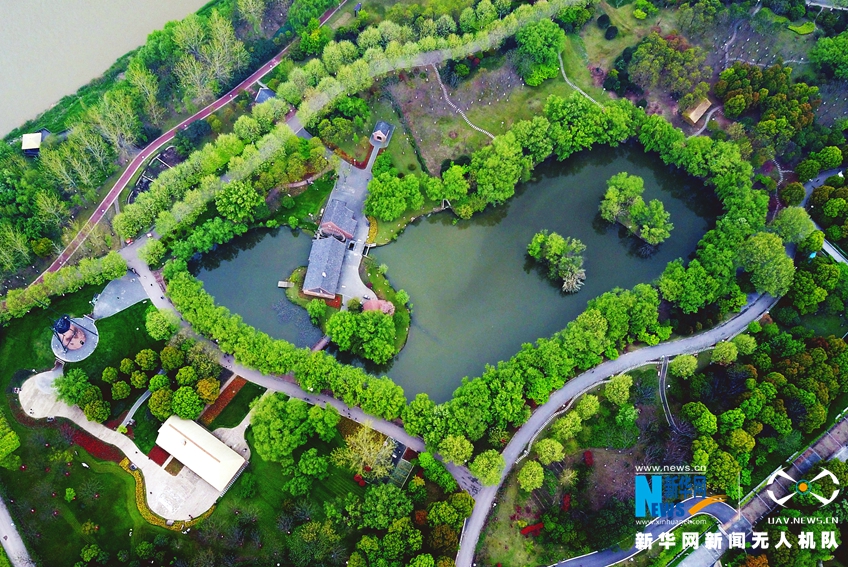 图为航拍南京绿博园,郁郁葱葱的绿色,带您感受秋天的美。(席航飞 摄)