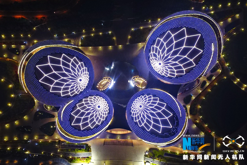 图为南京大剧院,夜晚的大剧院犹如夜光蝴蝶(姜海俊 孙帅摄)