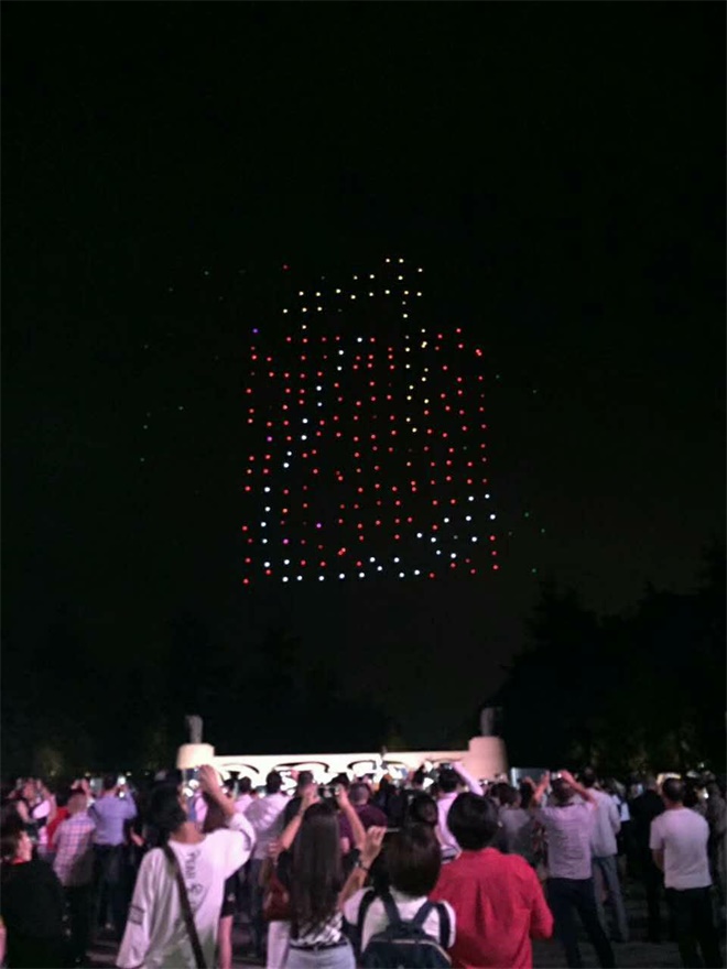 航展期间还有一个节目在德阳上演,那就是由近千架无人机组成的无人机编队表演“千机变”。无人机编队飞舞在德阳上空,伴随着五彩斑斓的灯光,编队组成熊猫、四川等图案。一幅幅由无人机星星点点的灯光汇聚成的精美图案画在德阳的夜夜空上,通过媒体传播在网络成“刷屏之势”。