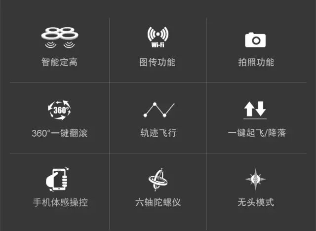 除了定高,还延续了一键翻滚、一键起落、无头模式、手机体感飞行、手机轨迹飞行的飞行体验,飞机设有快满档切换,室外建议选择快档。