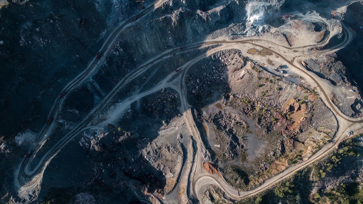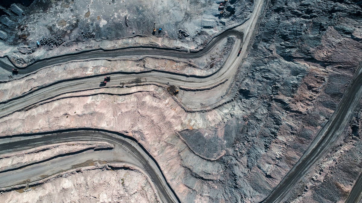 就像山路一样来来回回,一车一车的矿石从底部运到上面。