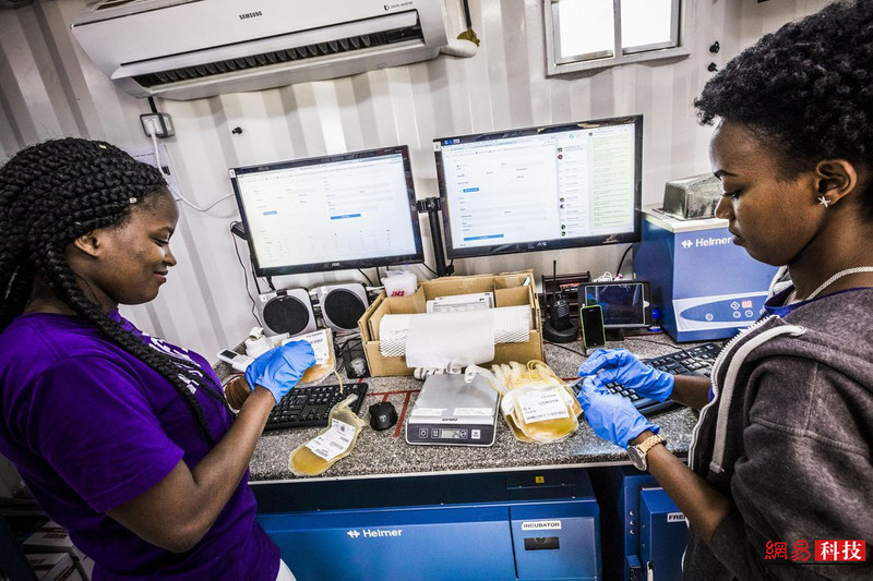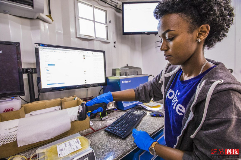 在Zipline位于卢旺达总部的实验室里,血液已经准备好被运往医院。