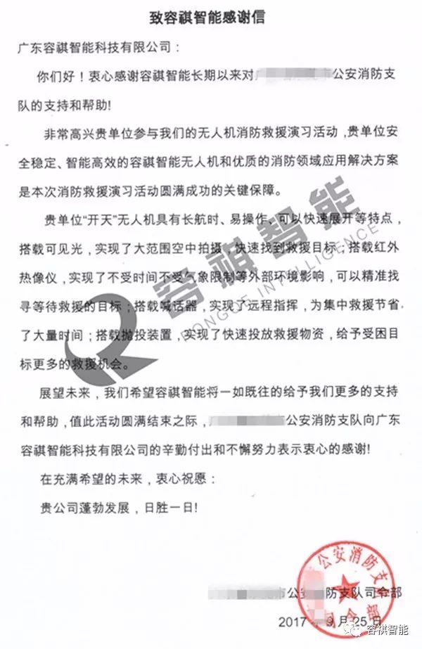 消防支队对容祺智能开天无人机的表现给予一致肯定