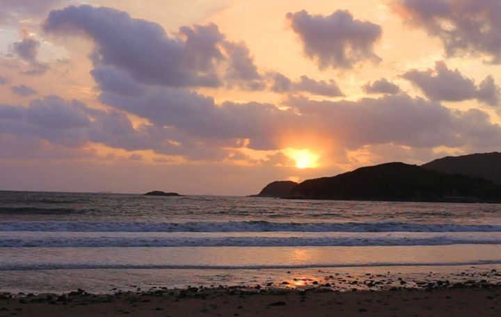 双龙沙滩位于舟山衢山镇,由凉峙、沙龙两个主沙滩组成,两沙滩处于东西二山咀拱形圈内,中间又伸出狗头颈般一座小山,远远望去,恰似“双龙戏珠”。每当东北风起,海浪冲进海湾,翻卷着白色的浪花,恰如两条白龙,二龙冲上沙滩又在轰然声中消失,场面极富动感而又气势磅礴,实在是一种奇观。