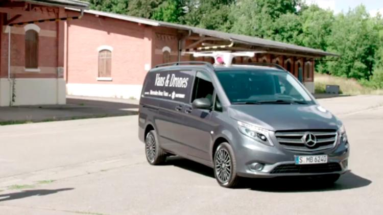 美国无人机物流公司 Matternet 正在瑞士跟奔驰合作,以奔驰的厢式货车作为流动中转站,为线上下单的顾客用无人机配送咖啡等商品。