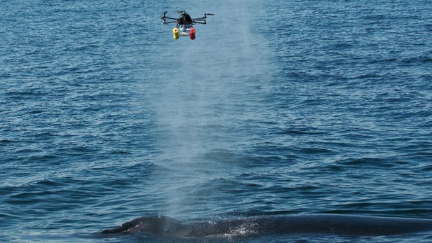 虽然科学家此前采用的方法是有效的,但这种方法有可能刺激到鲸鱼,导致它们产生偏离常规行为。考虑到这一点,伍兹霍尔海洋研究团队与美国国家海洋和大气管理局(NOAA)、 SR3 海洋生物响应、康复与研究及温哥华水族馆等机构的的研究人员合作,希望能借助一架遥控飞行的六旋翼无人机来完成任务。