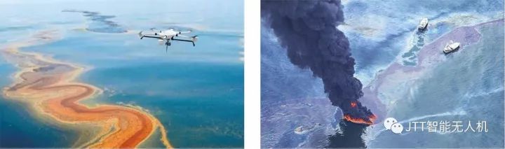 无人机通过搭载高清变焦相机或红外热成像仪,进行海面石油监测,定时定点空中巡逻,全面且直观的监测出石油泄漏,石油工地工作状态等。
