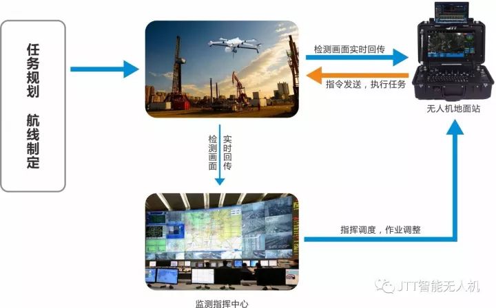 无人机应用于管道作业方面具有速度快、效率高、信息反馈及时等特点,其试飞期间工作流程如下: