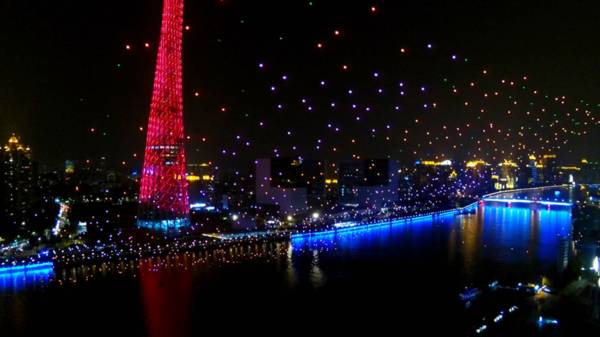 2017年春节,在“小蛮腰”广州塔下,1000架无人机齐飞升空,不停变换队列,时而摆出“福”字,时而化成惟妙惟肖的金鸡。20分钟的表演,创下了最多数量无人机编队飞行表演的世界纪录。更令人意想不到的是,千架无人机仅通过一个人一台电脑就完成操控。