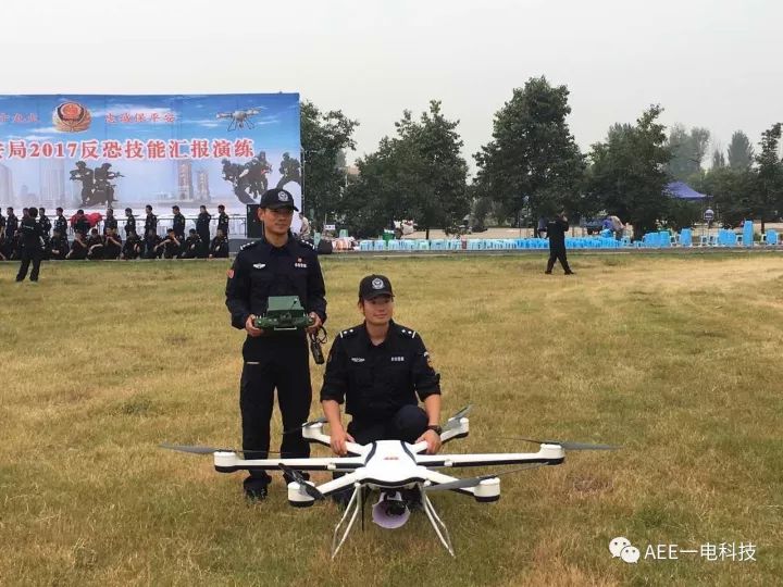 在处置大型室外活动无人机入侵环节,AEE一电航空多任务型警用无人机系统F600饰演“大反派”震撼亮相,上演无人机侵入及反侵入暴恐演练。