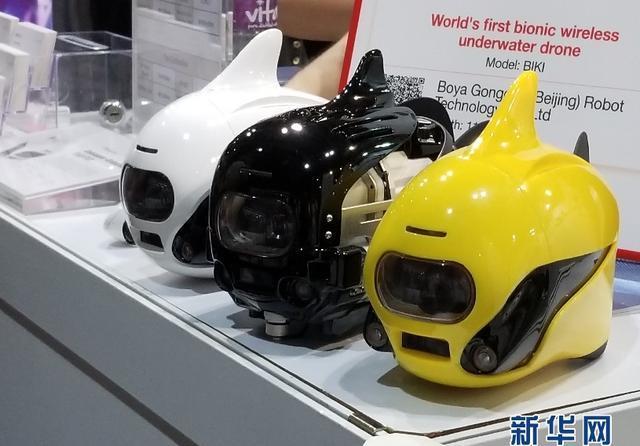 摇动着轻巧的尾巴在水中灵活地游来游去,这是博雅工道机器人科技有限公司研发的一款水中摄影智能机器鱼,它拥有一双敏锐的“眼睛”——一个拥有超广角的镜头,而且通过模仿珊瑚礁区特有的盒子鱼外观,仿生外观使得它在水中畅快游弋。而在对面的一个展位上,有着“大黄蜂”外衣的“水下无人机”,更是能够钻到百余米深的水下传输回拍摄画面,让深海拍摄变得“so easy”……