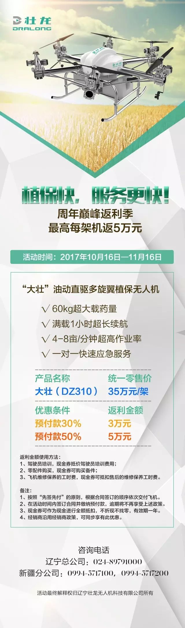 植保快,服务更快!壮龙科技周年返利风暴盛恵来袭!