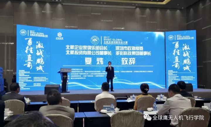 2017年10月15日,首届“北航全球创新创业大赛”深圳专场在深圳硬石酒店举行。中共深圳市龙华区委书记余新国,龙华区委常委、区政府常务副区长张纳沙,龙华区政府副区长陈建民,深圳市政协常委夏炜,北航深圳校友会会长黄永强,深圳市人大代表刘权辉,深圳市人大代表张庆杰,深圳市政协委员文沛荣,深圳市政协委员屠方魁等领导嘉宾出席活动。深圳市、区相关单位主要负责人,全球鹰无人机董事长余景兵作为北航优秀校友,参加了本次活动。