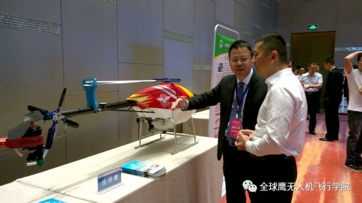 全球鹰董事长余景兵向深圳市龙华区委书记余新国介绍汇报全球鹰工业级无人机产品